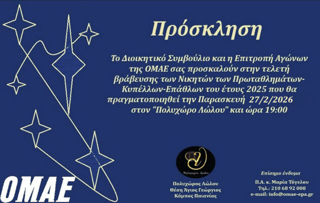 Πρόσκληση ΟΜΑΕ για απονομές Πρωταθλημάτων, Κυπέλλων και Επάθλων 2025motorplayadmin16 Φεβρουαρίου 202616 Φεβρουαρίου 2026